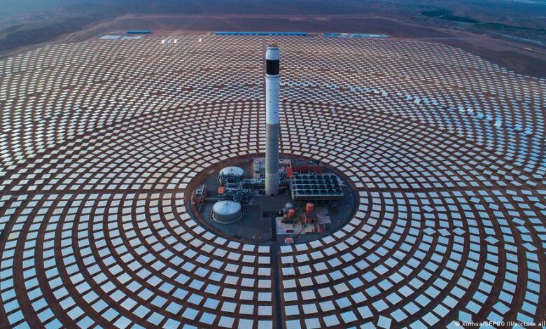 بالقرب من مدينة ورزازات المغربية الواقعة على حافة الصحراء الكبرى، وعلى هضبة عالية تحيط بها جبال الأطلس، يجري بناء واحدة من أكبر محطات الطاقة الشمسية في العالم. إنها محطة “نور”.