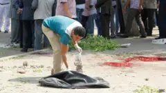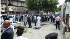 وعرض التلفزيون المصري الرسمي لقطات تظهر أوراق جرائد تغطي آثار دماء على ما يبدو وشجرة سقطت فوق سيارة بموقع الانفجار.