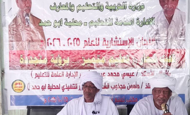 ابوحمد 25-10-2025 (سونا)- خاطب الأستاذ مامون مجذوب شعرابي المدير التنفيذي لمحلية ابوحمد اليوم الجلسة الافتتاحية لاستشارية التعليم ايذانا ببداية العام الدراسي 25 – 2026 والمنعقد تحت شعار تعليم متميز — برؤية متجددة.