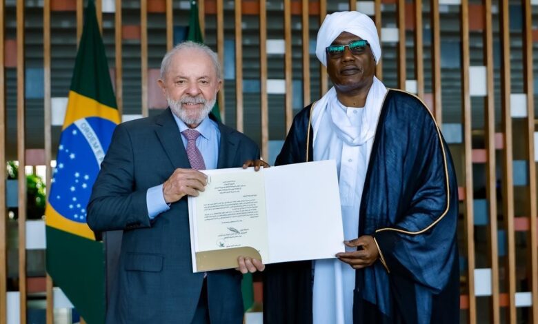 البرازيل 30-10-2025(سونا)- قدّم السفير د. أحمد التجاني سوار مؤخرا أوراق اعتماده إلى فخامة الرئيس لويس إيناسيو لولا دا سيلفا، رئيس جمهورية البرازيل الاتحادية، سفيراً فوق العادة ومفوضاً لجمهورية السودان لدى جمهورية البرازيل.