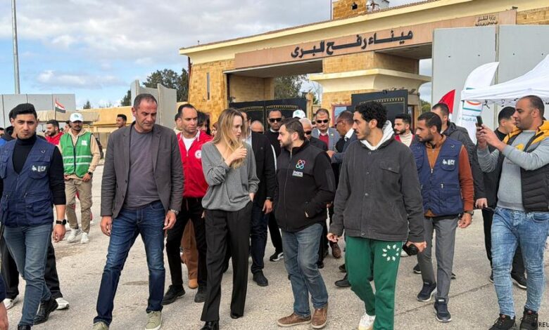 زارت نجمة هوليوود أنجيلينا جولي الجانب المصري من معبر رفح الحدودي مع غزة اليوم الجمعة (الثاني من يناير/كانون الثاني 2026) حيث تحدثت إلى أعضاء في الهلال الأحمر وسائقي شاحنات ينقلون المساعدات الإنسانية، بحسب مراسلي وكالة فرانس برس. وقالت الممثلة والمبعوثة الخاصة السابقة لمفوضية الأمم المتحدة لشؤون اللاجئين التي وصلت برفقة وفد أمريكي إنها “تشرفت” بلقاء متطوعي المنظمات غير الحكومية المتمركزين قرب المعبر.
