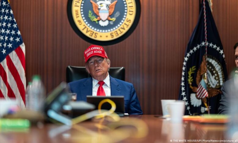 “إيران تتحدث إلينا، وسنرى ما إذا كان بإمكاننا فعل شيء ما، وإلا فسنرى ما سيحدث… لدينا أسطول كبير يتجه إلى هناك، أكبر مما كان لدينا- ولا يزال لدينا في الواقع – في فنزويلا”صورة من: Chip Somodevilla/Getty Images