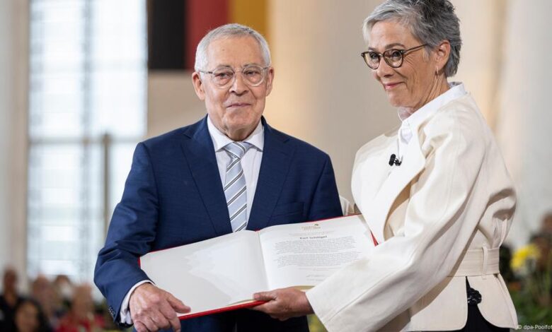 وفي كلمة الشكر التي ألقاها، دعا شلوغل، المعروف بانتقاده للرئيس الروسي فلاديمير بوتين، الألمان إلى التعلم من الأوكرانيين، قائلا إنهم “متمرسون في تعاليم السلوك الخاص بالمقاومة، ويعلمون الأوروبيين ما الذي ينتظرهم إن لم يستعدوا أخيرا لحالة الطوارئ”.